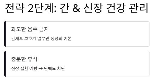 결핍된 수치를 보충하고 알부민의 효능을 극대화하기 위한 체계적인 방법입니다.