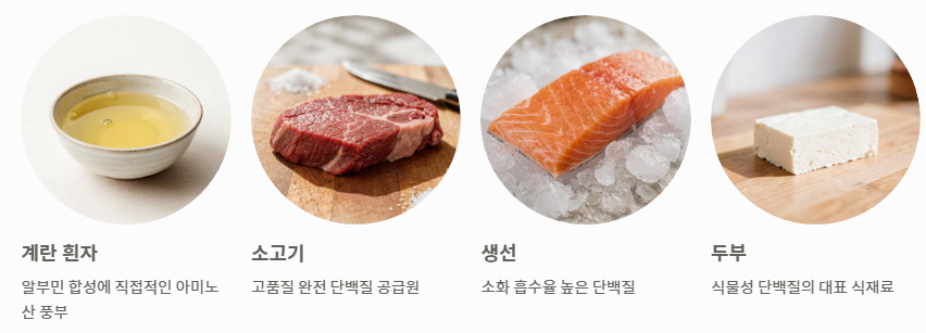 간 기능에 큰 문제가 없다면 식단을 통한 보충이 가장 안전하고 건강한 방법입니다. 계란 흰자, 소고기, 생선, 두부 등은 알부민을 자연스럽게 누릴 수 있는 최고의 식재료입니다. 특히 계란 흰자는 알부민 합성에 직접적인 도움을 주는 아미노산이 풍부합니다.