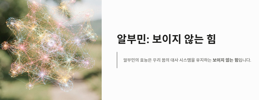 "갑작스러운 피로감과 함께 몸이 붓는 증상이 지속되고 있나요? 우리 혈액 속 단백질의 절반 이상을 차지하는 '알부민'은 신체의 수분 밸런스를 조절하고 영양분을 운반하는 핵심 일꾼입니다.