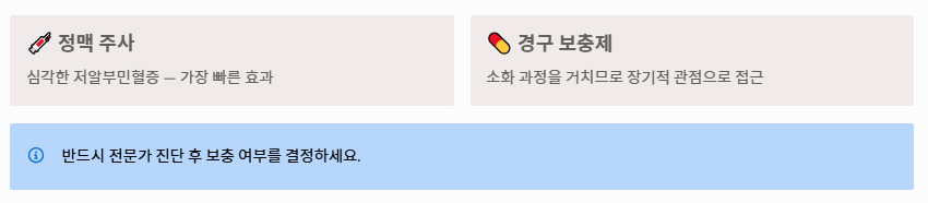 심각한 저알부민혈증의 경우 병원에서 정맥 주사를 통해 직접 보충하기도 합니다. 이때 나타나는 컨디션 회복은 알부민을 가장 빠르게 체감하는 방법입니다. 다만 먹는 형태의 보충제는 소화 과정을 거치므로 즉각적인 효과보다는 장기적인 관점에서 접근해야 합니다.