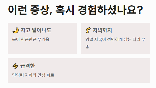 "혹시 최근 들어 자고 일어나도 몸이 천근만근 무겁고, 양말 자국이 저녁까지 선명하게 남을 정도로 다리가 붓지는 않으셨나요? 우리 혈액 속에는 '생명의 단백질'이라 불리는 핵심 성분이 흐르고 있습니다. 하지만 이 성분이 단 1%만 부족해져도 신체는 수분 밸런스를 잃고 급격한 면역력 저하를 겪게 됩니다. 단순히 피곤해서일까요, 아니면 내 몸의 기초 공사가 무너지고 있는 신호일까요?"