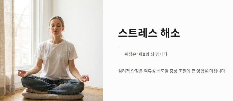 - 스트레스 해소: 위장은 '제2의 뇌'입니다. 심리적 안정은 역류성 식도염 증상 조절에 큰 영향을 미칩니다.