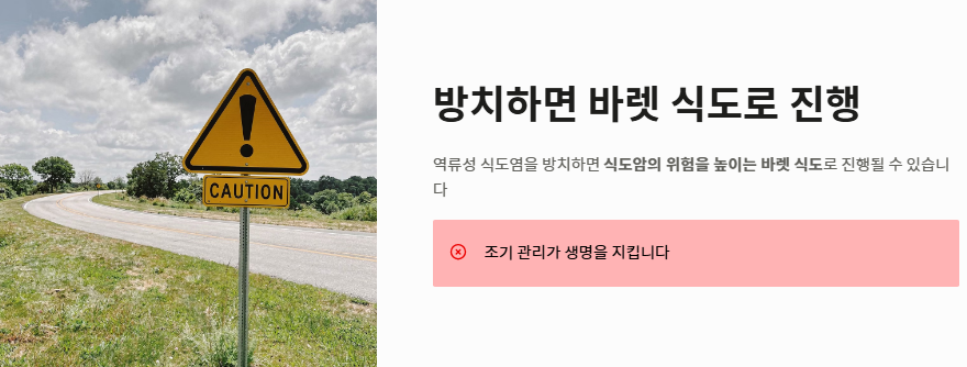 - 방치 시 식도암의 위험을 높이는 바렛 식도로 진행될 수 있어 주의가 필요합니다.