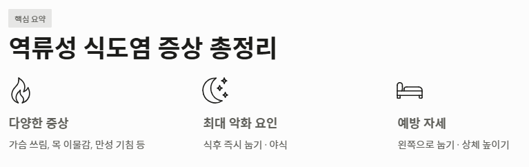 오늘 살펴본 역류성 식도염 증상에 대한 핵심 내용을 정리합니다.