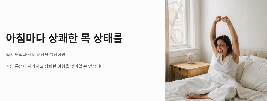 결론적으로 역류성 식도염 증상은 단순히 위장의 문제가 아니라 우리의 잘못된 생활 습관이 보내는 경고 신호입니다. 오늘 알려드린 식사 원칙과 자세 교정을 실천해 보세요. 불편했던 가슴의 통증이 사라지고 아침마다 상쾌한 목 상태를 맞이하게 될 것입니다. 당신의 속 편한 내일을 위해 지금 바로 역류성 식도염 증상 관리를 시작해 보시길 바랍니다!