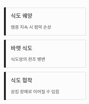 - 2단계: 목의 이물감과 인후통: 음식물이 걸린 듯한 답답함이나 침을 삼킬 때 불편함이 느껴진다면 이 역시 역류성 식도염 증상일 가능성이 큽니다. 위산이 상부 식도까지 올라와 자극을 주기 때문입니다.