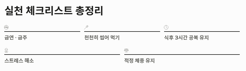 - 금연 및 금주: 식도 괄약근의 힘을 약하게 만드는 주범입니다.
