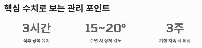 단순히 약을 먹는 것보다 생활 습관을 교정하는 것이 역류성 식도염 증상 완화의 핵심입니다.