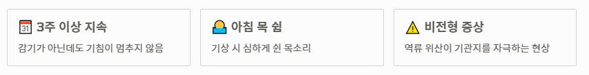 - 3단계: 만성 기침과 목소리 변화: 감기가 아닌데도 기침이 3주 이상 지속되거나 아침에 목소리가 심하게 쉰다면 비전형적인 역류성 식도염 증상을 의심해야 합니다. 역류한 위산이 기관지를 자극하며 나타나는 현상입니다.