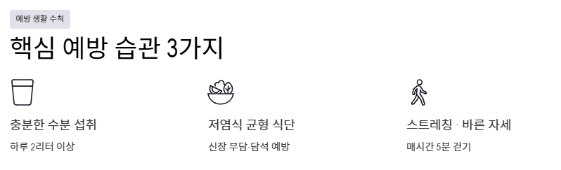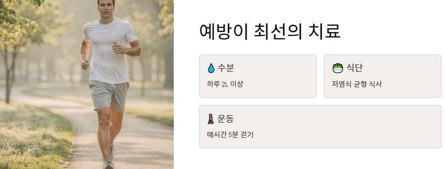 - 충분한 수분 섭취: 하루 2리터 이상의 물은 요로결석과 신장 결석 예방의 기본입니다. 가장 경제적이고 효과적인 오른쪽 옆구리 뒤쪽 통증 의심되는병 예방책입니다.