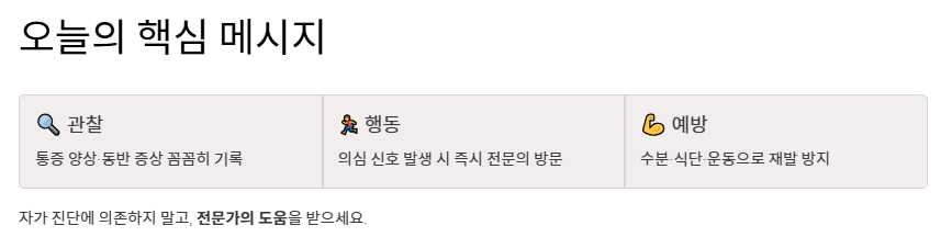 - 자가 진단에 의존해 치료 시기를 놓치지 말고, 통증이 지속된다면 전문가의 도움을 받으세요.