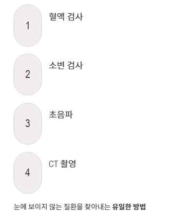 혈액 검사, 소변 검사, 초음파 및 CT 촬영을 통해 내부 장기의 상태를 확인하십시오. 이는 눈에 보이지 않는 오른쪽 옆구리 뒤쪽 통증 의심되는병을 확실히 찾아내는 유일한 방법입니다.