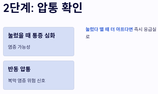 2단계: 통증 부위 눌러보기 (압통 확인)