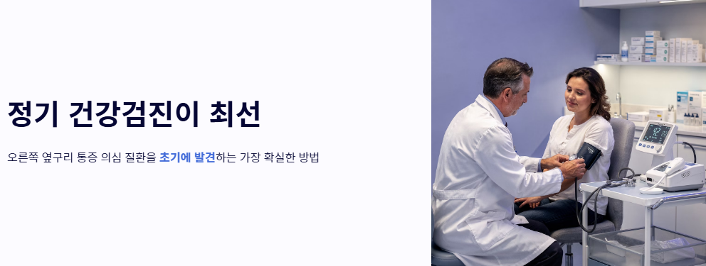 - 평소 정기적인 건강검진이 오른쪽 옆구리 통증 의심되는병을 초기에 발견하는 최선의 방법입니다.