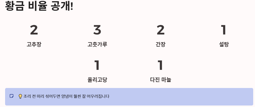 고추장 2, 고춧가루 3, 간장 2, 설탕 1, 올리고당 1, 다진 마늘 1의 비율을 기억하세요. 이 양념 배합이 오징어 볶음 맛있게 만드는법의 핵심 감칠맛을 결정합니다.