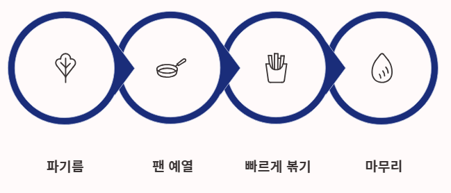 - 센 불에서 단시간에 볶아야 수분이 생기지 않고 식감이 탱글해집니다.