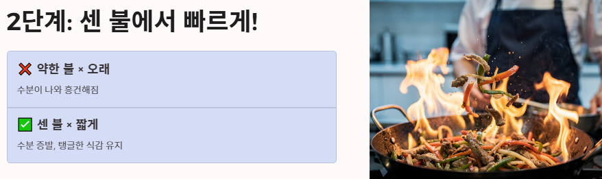 가장 많이 실수하는 부분이 약한 불에서 오래 볶는 것입니다. 팬을 충분히 달군 후 센 불에서 빠르게 볶아내는 것이 물 안 생기는 오징어 볶음 맛있게 만드는법의 핵심 기술입니다.