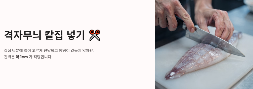 - 칼집을 넣어 양념 흡수율을 높이는 것이 최고의 오징어 볶음 맛있게 만드는법입니다.