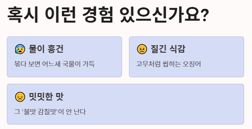 입맛 없는 날, 갓 지은 하얀 쌀밥 위에 매콤한 양념이 잘 배어든 오징어 조각 하나를 올려 먹는 상상만으로도 침이 고이지 않나요? 하지만 집에서 만들면 오징어에서 물이 너무 많이 나와 흥건해지거나, 식감이 질겨져 실망하는 경우가 많습니다. "왜 식당에서 먹는 그 불맛과 감칠맛이 안 날까?" 고민하셨다면 오늘 제대로 찾아오셨습니다. 황금 비율 양념장부터 물 안 생기게 볶는 비법까지, 오징어 볶음 맛있게 만드는법의 모든 노하우를 공개합니다. 이 글을 끝까지 읽으시면 누구나 실패 없이 집에서도 전문점 수준의 오징어 볶음 맛있게 만드는법을 마스터하실 수 있습니다.