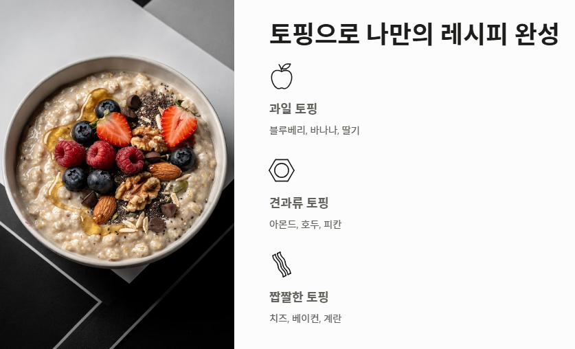 오트밀 조리 시 영양과 맛의 균형을 맞추는 두 가지 핵심 시각이 있습니다.