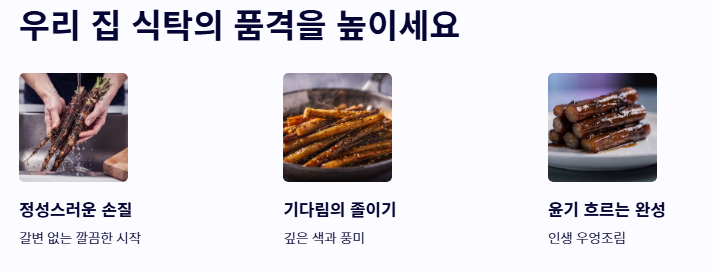 결론적으로 우엉조림 맛있게 하는법은 정성스러운 손질과 졸이는 과정에서의 기다림이 만들어내는 맛의 예술입니다. 한 번 넉넉히 만들어두면 일주일이 든든한 이 반찬은 식이섬유가 풍부해 건강에도 더할 나위 없이 좋습니다. 오늘 알려드린 노하우를 활용해, 윤기가 흐르고 식감이 살아있는 우엉조림 한 접시로 우리 집 식탁의 품격을 높여보시는 건 어떨까요?