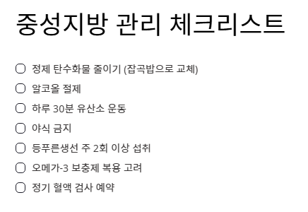 오늘 상세히 살펴본 중성지방 낮추는 방법의 핵심 내용을 정리합니다.