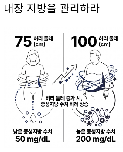 - 내장 지방 관리: 허리둘레와 중성지방은 비례합니다. 복부 비만을 해결하는 과정 자체가 곧 최고의 중성지방 낮추는 방법이 됩니다.