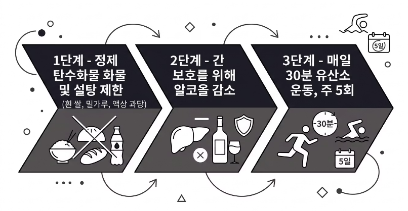 수치를 안정적으로 관리하기 위해서는 체계적인 접근이 필수입니다. 다음은 가장 효과적인 중성지방 낮추는 방법의 단계별 가이드입니다.