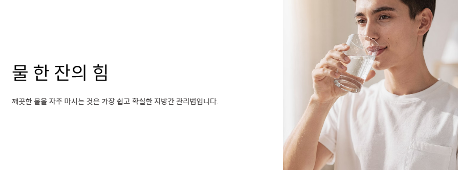1. 충분한 수분 섭취: 물은 신진대사를 촉진하고 간의 해독 과정을 보조합니다. 깨끗한 물을 자주 마시는 것은 아주 쉬운 지방간 없애는 방법입니다.
