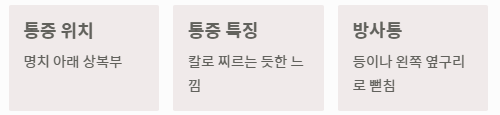 - 통증 특징: 명치 부근의 극심한 통증이 등 뒤쪽으로 뻗치며 누우면 더 아픈 것은 핵심적인 췌장염 증상입니다.