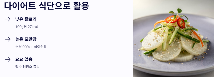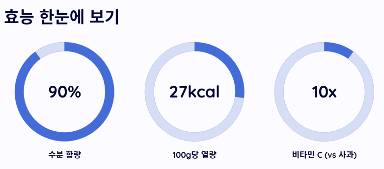 - 다이어트와 피부 미용에도 탁월하여 남녀노소 모두에게 유익한 채소입니다.