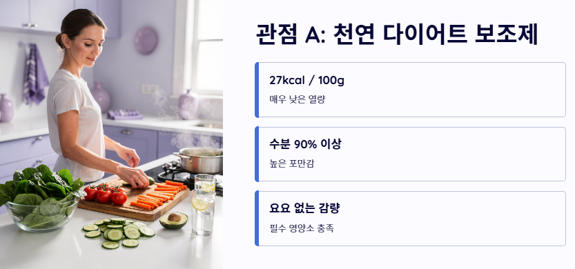 - 관점 A: '천연 다이어트 보조제'로서의 가치 콜라비는 100g당 약 27kcal라는 낮은 열량을 자랑합니다. 수분 함량이 90% 이상이라 포만감이 높으면서도 필수 영양소를 채워주어, 요요 현상 없는 건강한 체중 감량 도구로서 콜라비 효능을 가장 높게 평가하는 관점입니다.