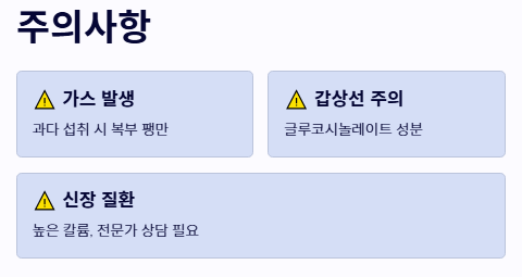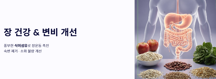 - 가스 발생 주의: 식이섬유가 너무 많아 한 번에 과하게 먹으면 장내 가스가 차거나 복부 팽만감을 느낄 수 있습니다.