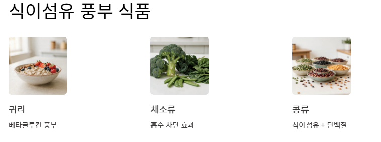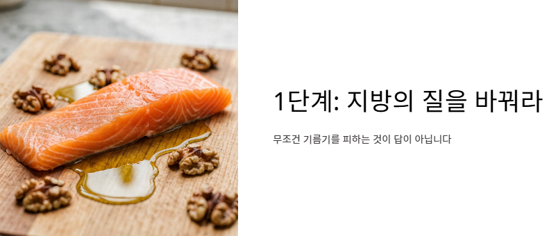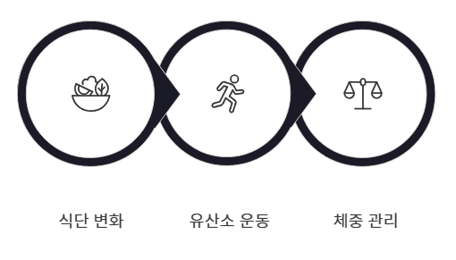 - 포화지방 대신 불포화지방과 식이섬유 위주의 식단으로 전환해야 합니다.
