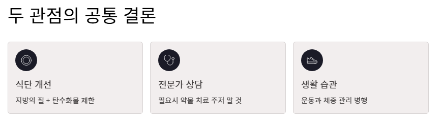 - 단순 지방 섭취 제한뿐만 아니라 정제 탄수화물을 줄이는 노력이 병행되어야 합니다.