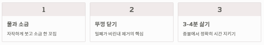 - 비린내 차단: 삶는 동안 뚜껑을 열지 않는 것이 콩나물 무침 맛있게 만드는법의 핵심입니다.